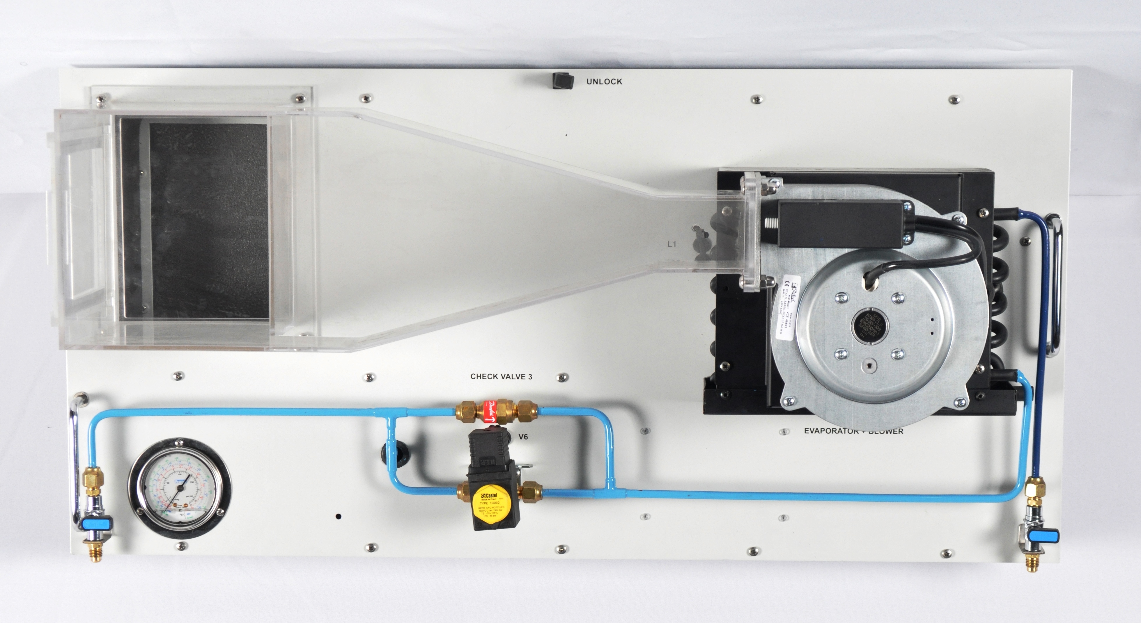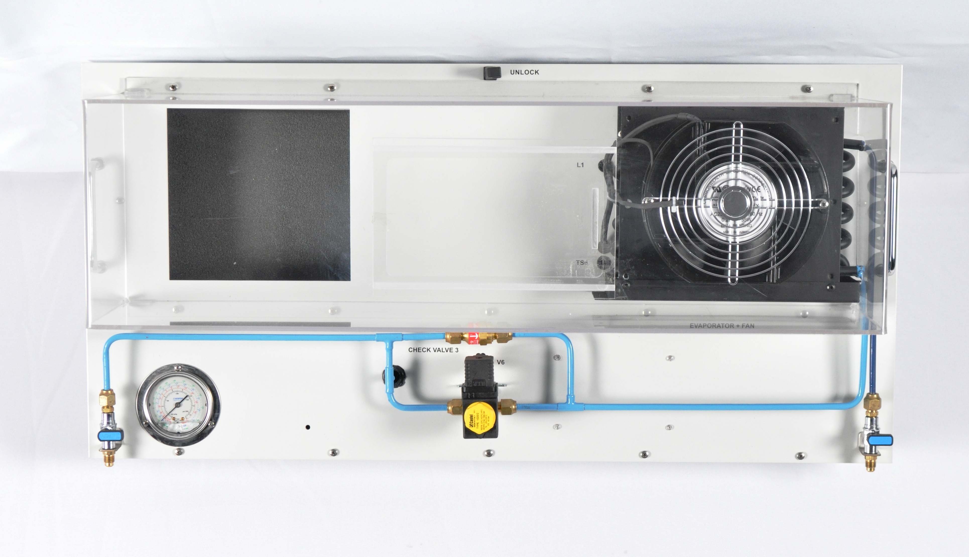 El sistema de entrenamiento en refrigeración está diseñado para proporcionar a los estudiantes los fundamentos de la refrigeración y un programa de entrenamiento avanzado en refrigeración básica y profesional. Los estudiantes podrán identificar y dominan los diversos componentes reales y arreglos de la refrigeración.